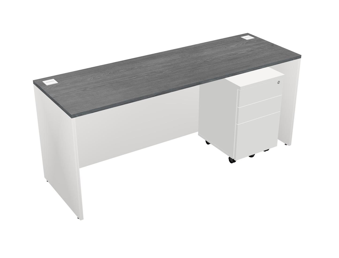 Grey Rectangular Office Desk Plus White Wooden Mobile Drawers