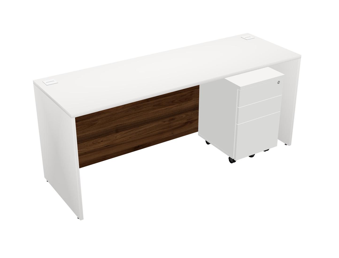 White Rectangular Office Desk Plus White Wooden Mobile Drawers
