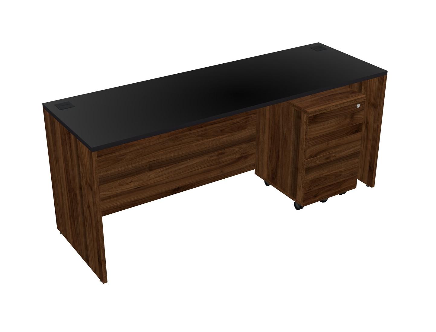 Black Rectangular Office Desk Plus Columbia Walnut Wooden Mobile Drawers