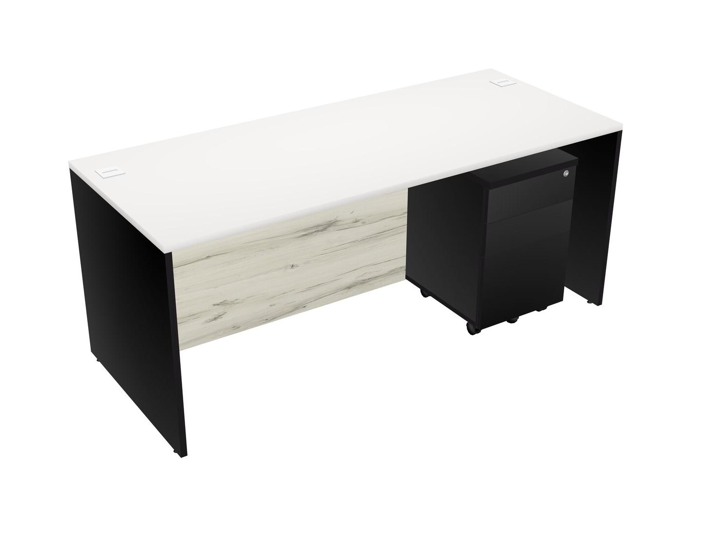 White Rectangular Office Desk Plus Black Wooden Mobile Drawers