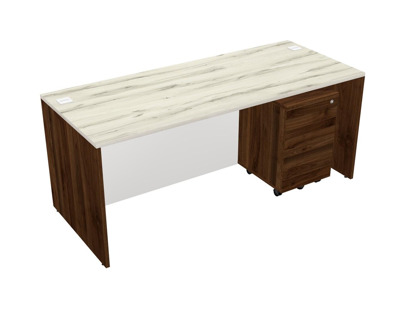 Heinne Holz Rectangular Office Desk Plus Columbia Walnut Wooden Mobile Drawers