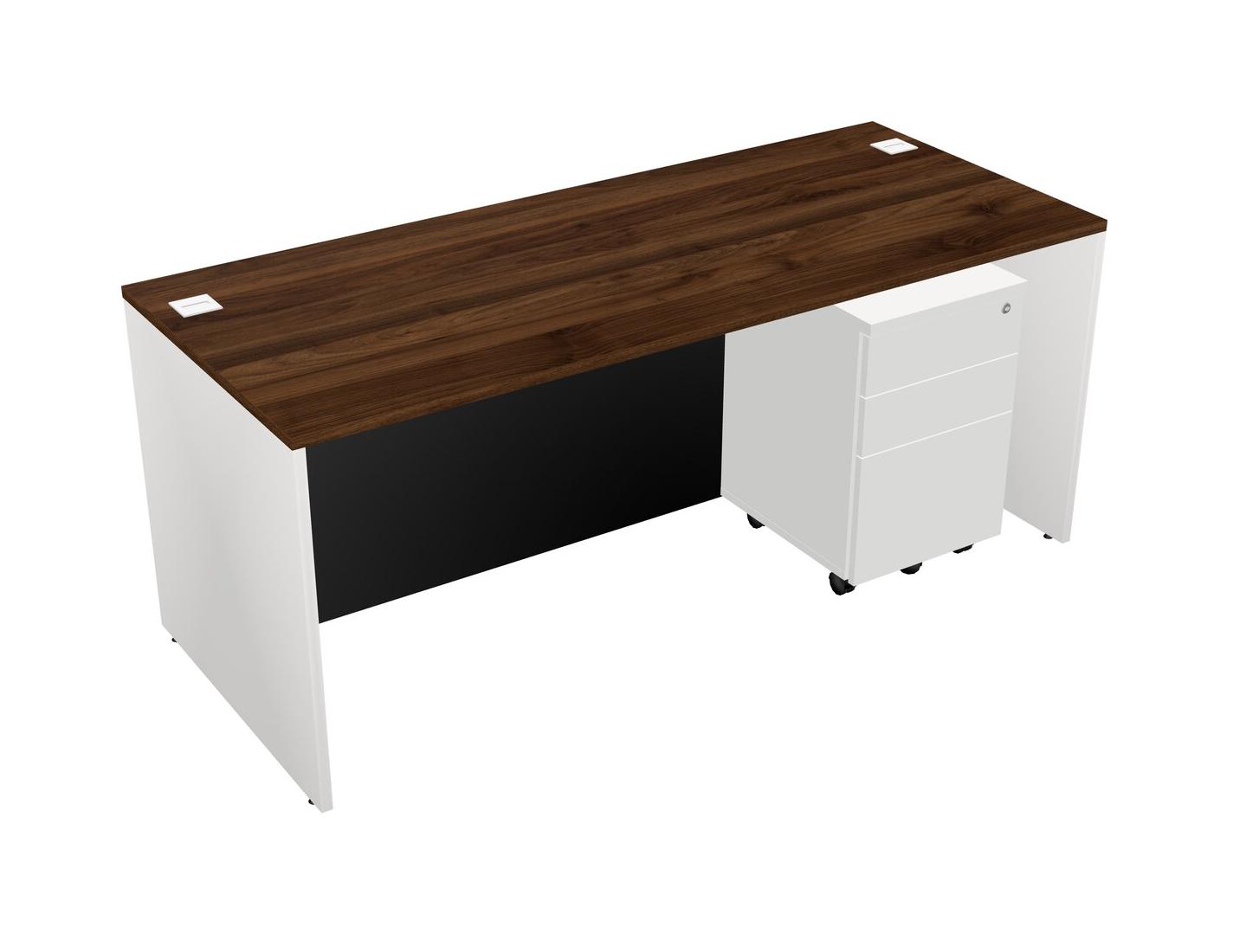 Columbia Walnut Rectangular Office Desk Plus White Wooden Mobile Drawers