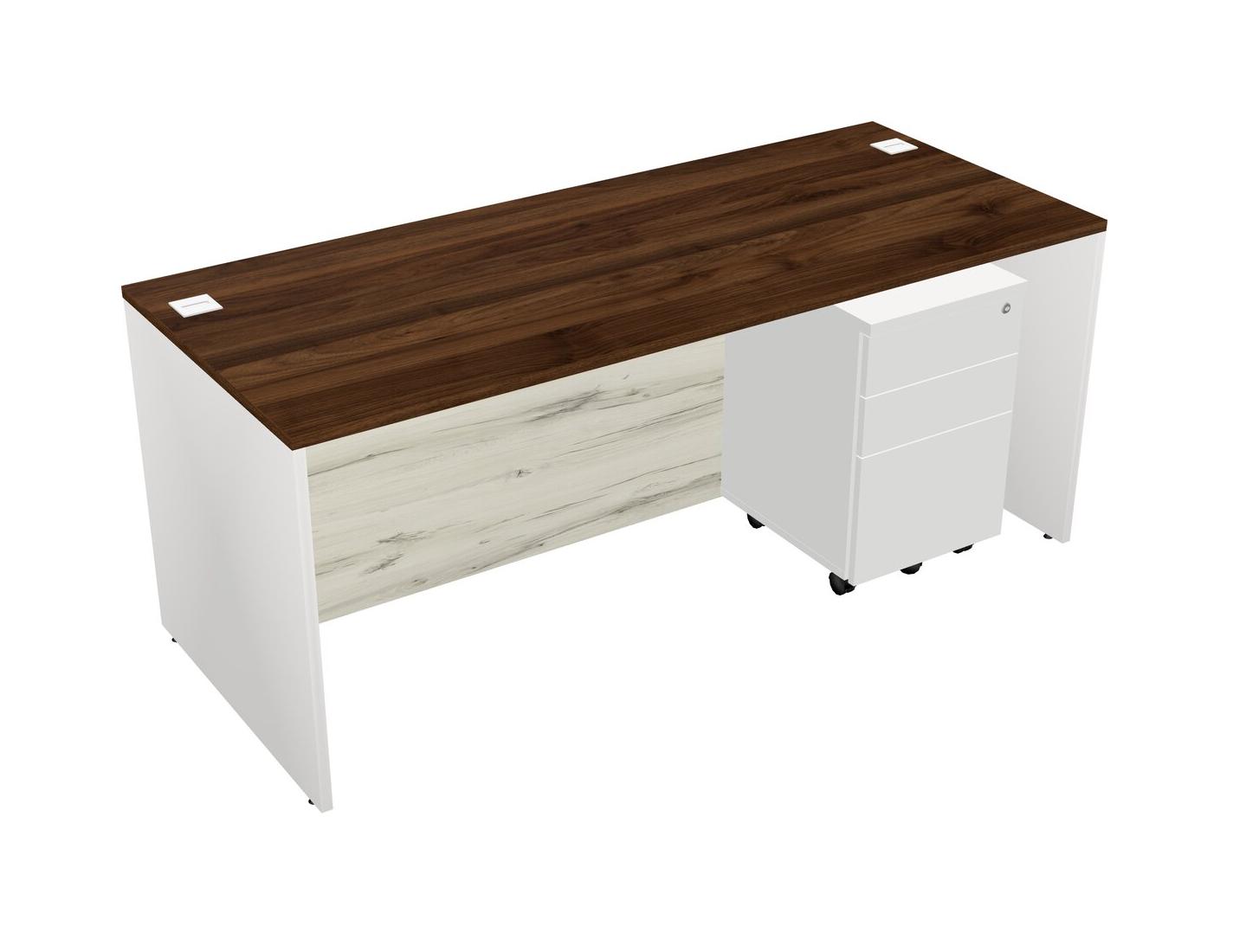 Columbia Walnut Rectangular Office Desk Plus White Wooden Mobile Drawers