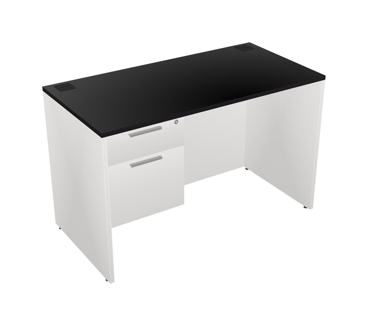 Black Rectangular Office Desk Plus White Hanging Drawers