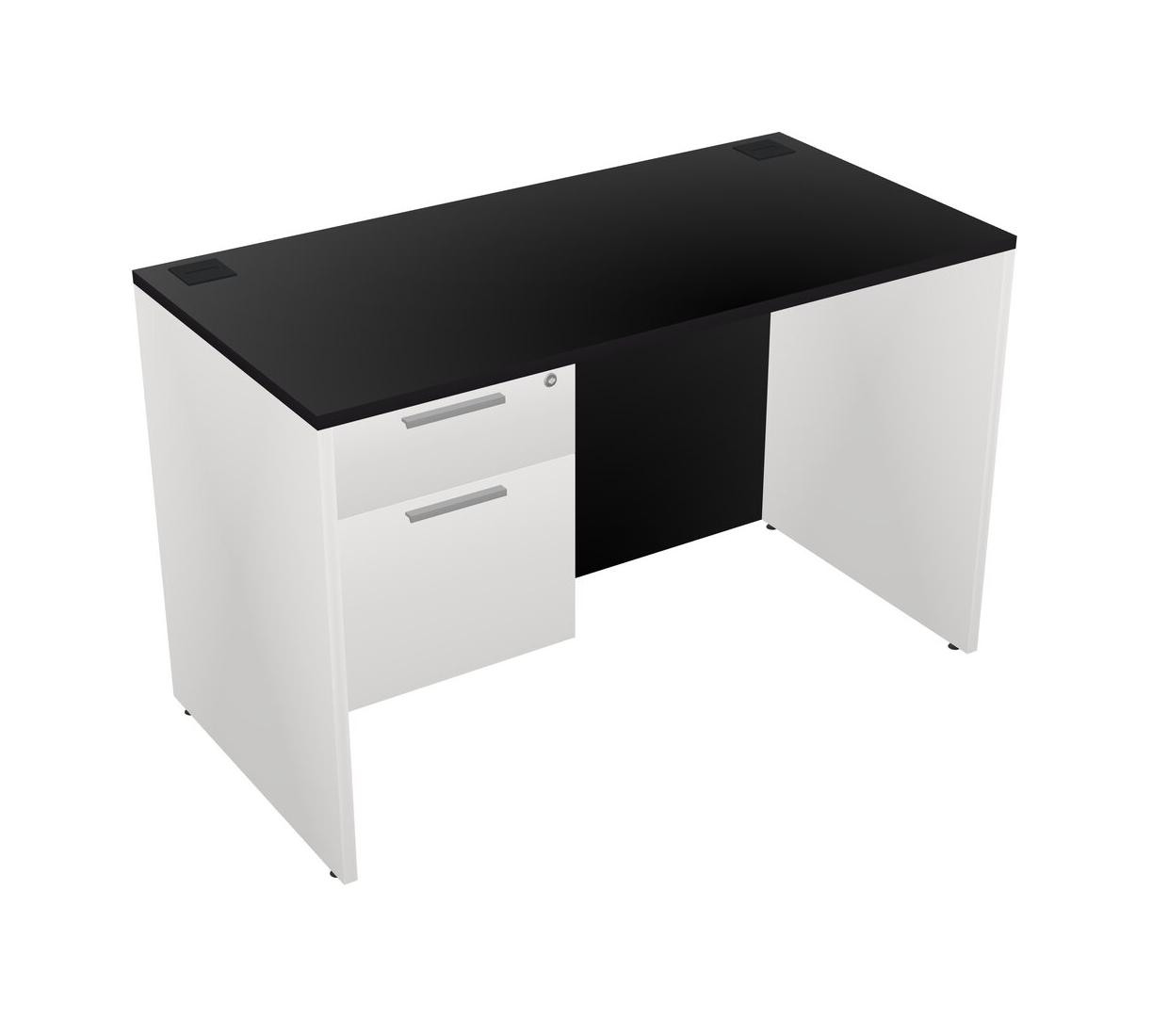 Black Rectangular Office Desk Plus White Hanging Drawers