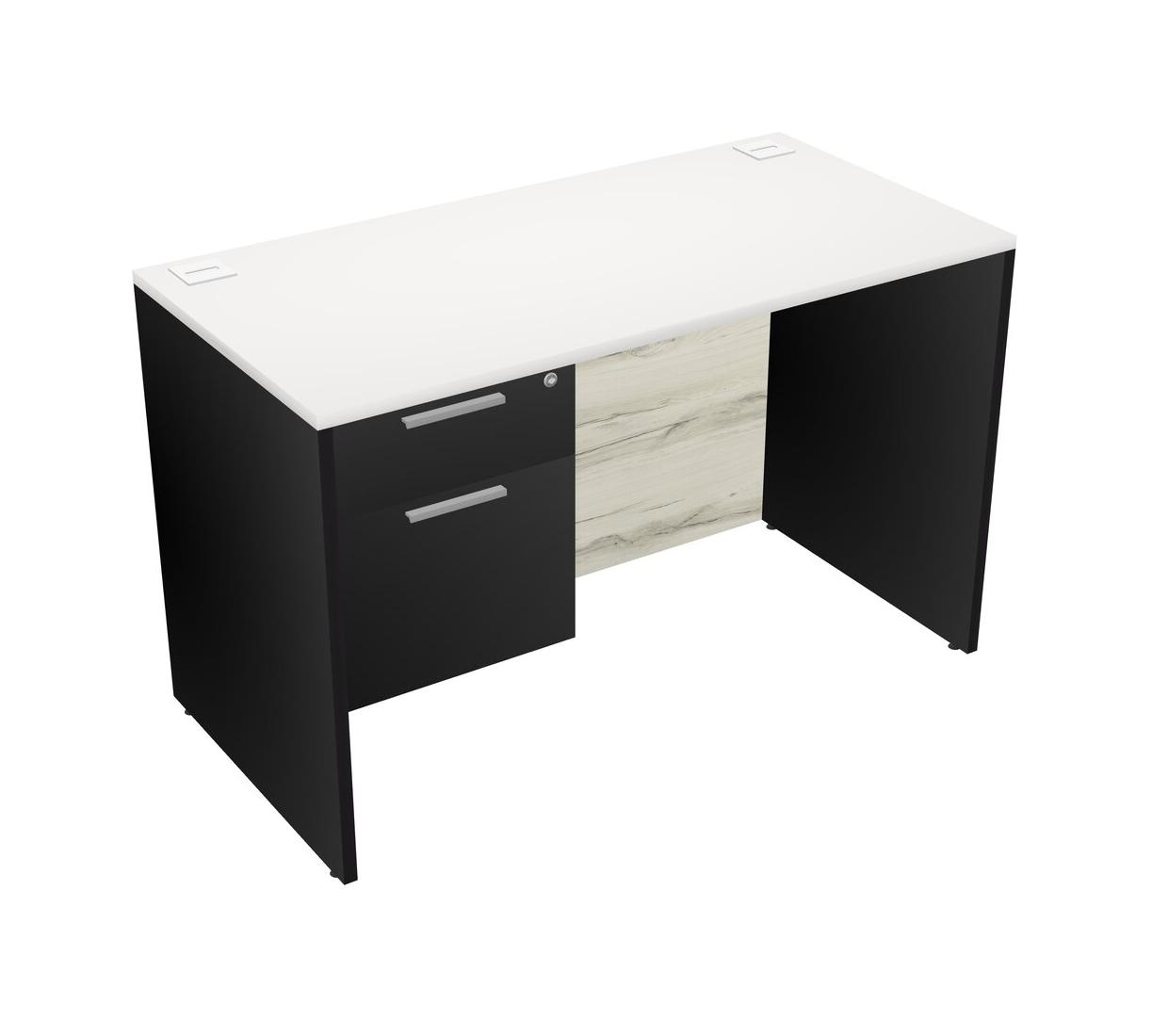 White Rectangular Office Desk Plus Black Hanging Drawers