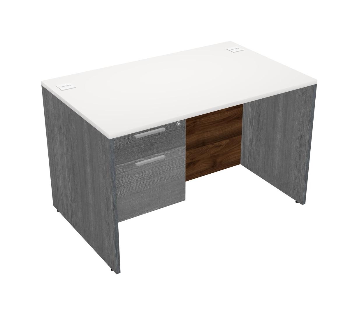 White Rectangular Office Desk Plus Grey Hanging Drawers