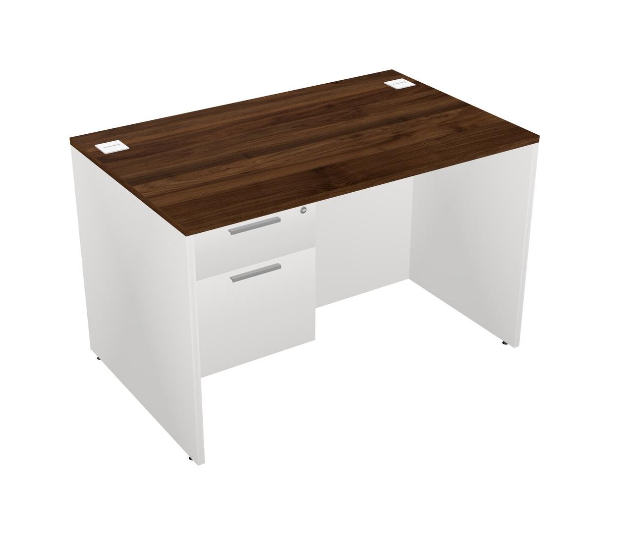Columbia Walnut Rectangular Office Desk Plus White Hanging Drawers