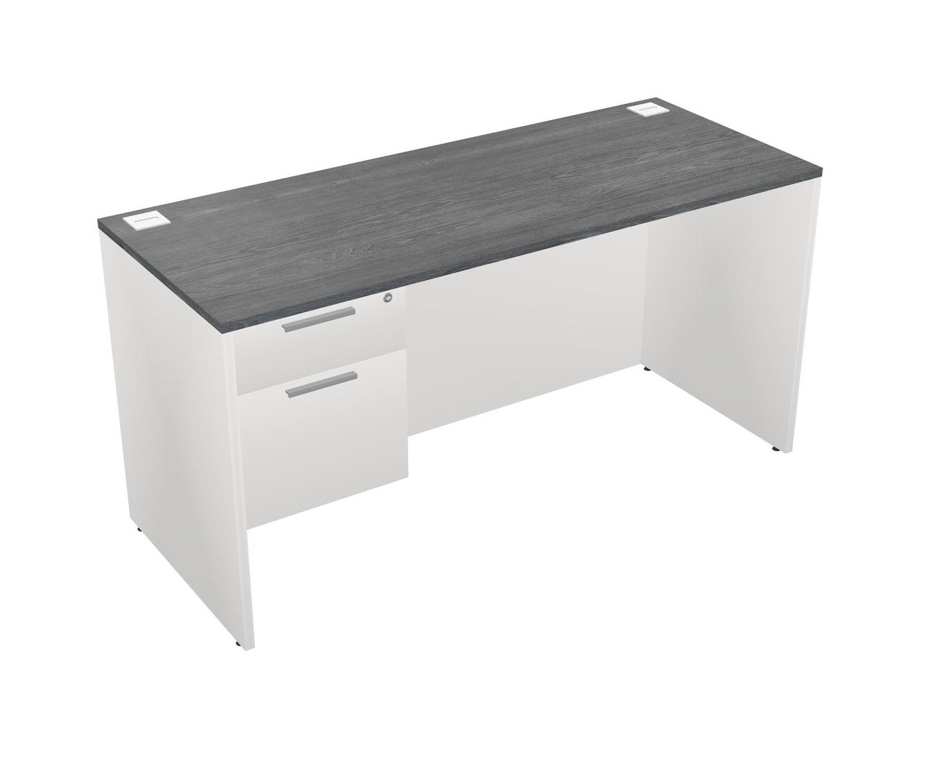 Grey Rectangular Office Desk Plus White Hanging Drawers