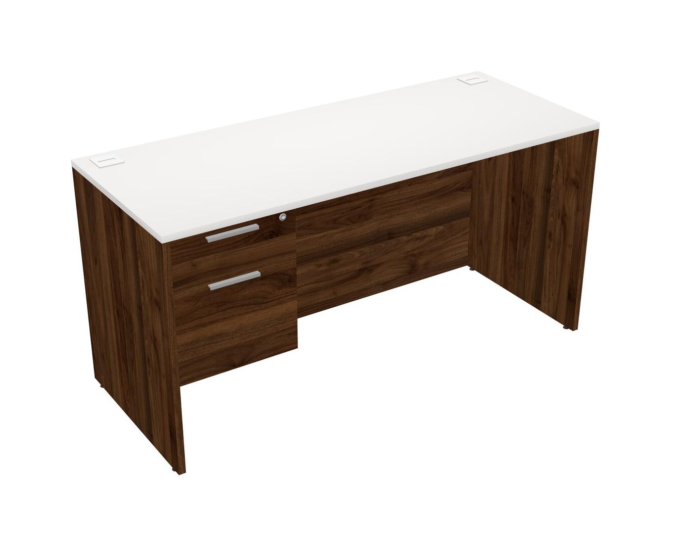 White Rectangular Office Desk Plus Columbia Walnut Hanging Drawers