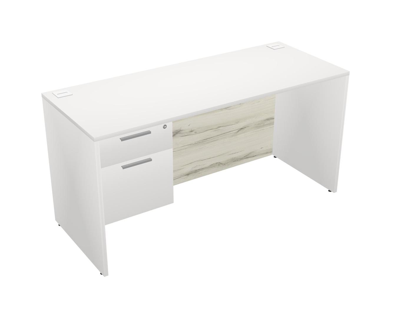 White Rectangular Office Desk Plus White Hanging Drawers