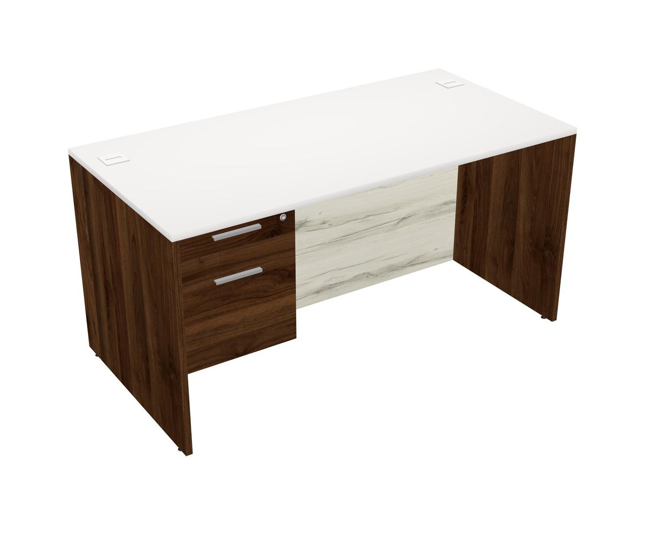 White Rectangular Office Desk Plus Columbia Walnut Hanging Drawers