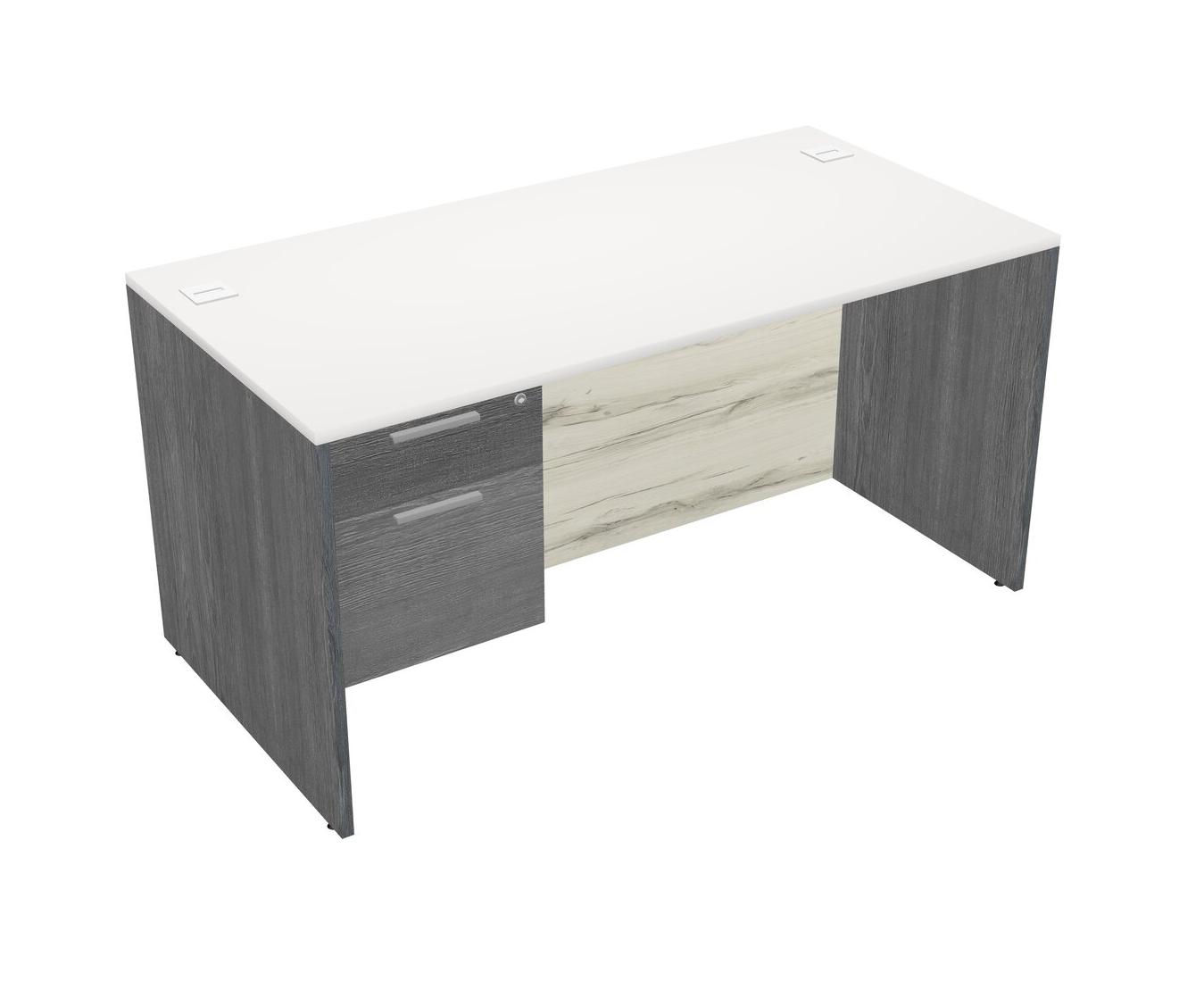 White Rectangular Office Desk Plus Grey Hanging Drawers