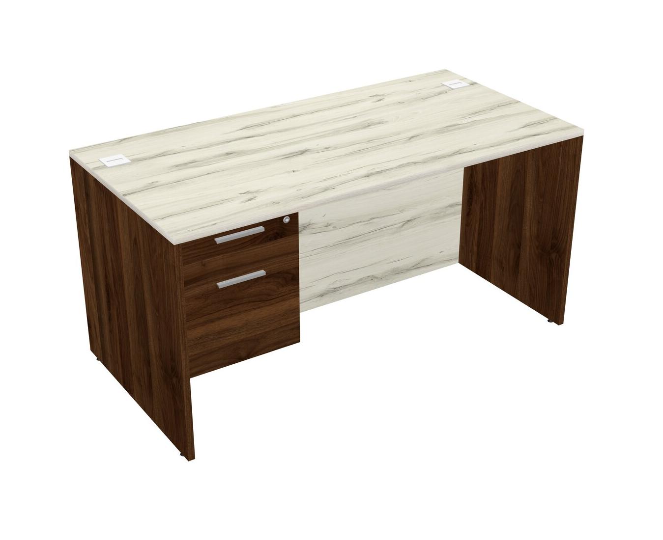 Heinne Holz Rectangular Office Desk Plus Columbia Walnut Hanging Drawers