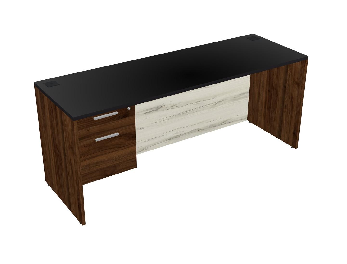 Black Rectangular Office Desk Plus Columbia Walnut Hanging Drawers