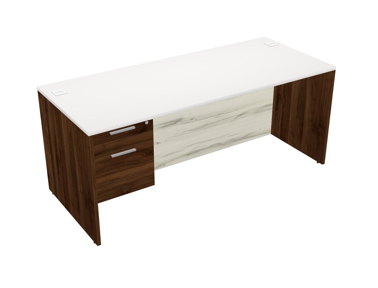 White Rectangular Office Desk Plus Columbia Walnut Hanging Drawers