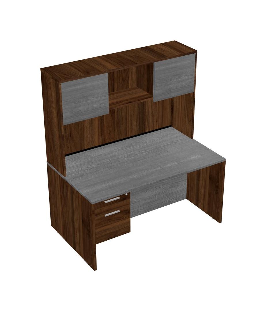 Grey Rectangular Office Desk Plus Columbia Walnut Hanging Drawers And Columbia Walnut Hutch