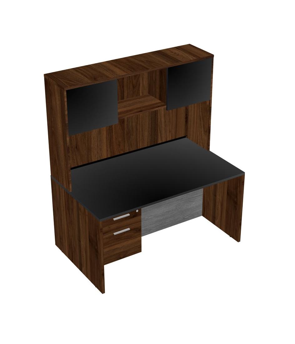 Black Rectangular Office Desk Plus Columbia Walnut Hanging Drawers And Columbia Walnut Hutch