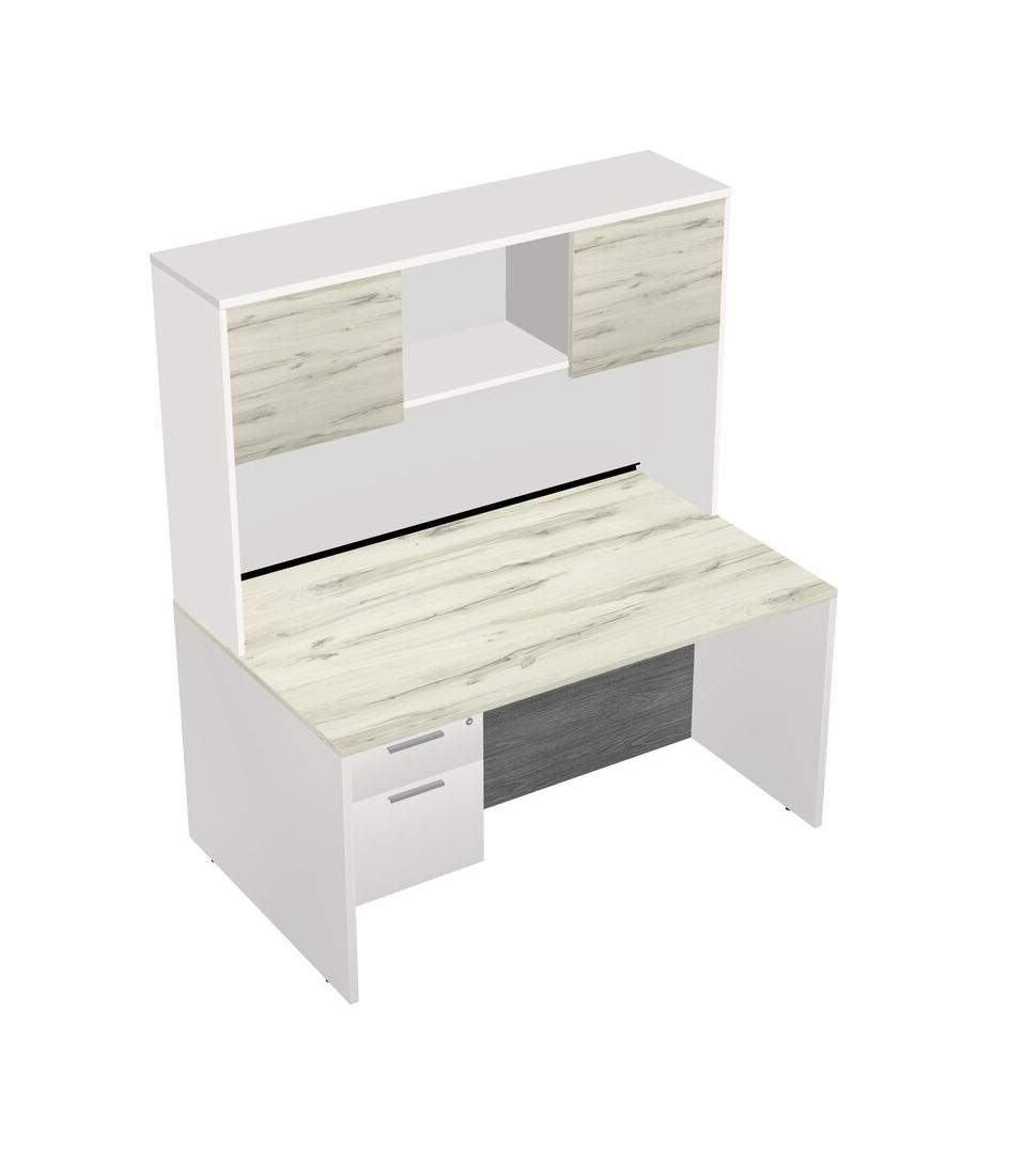 Heinne Holz Rectangular Office Desk Plus White Hanging Drawers And White Hutch