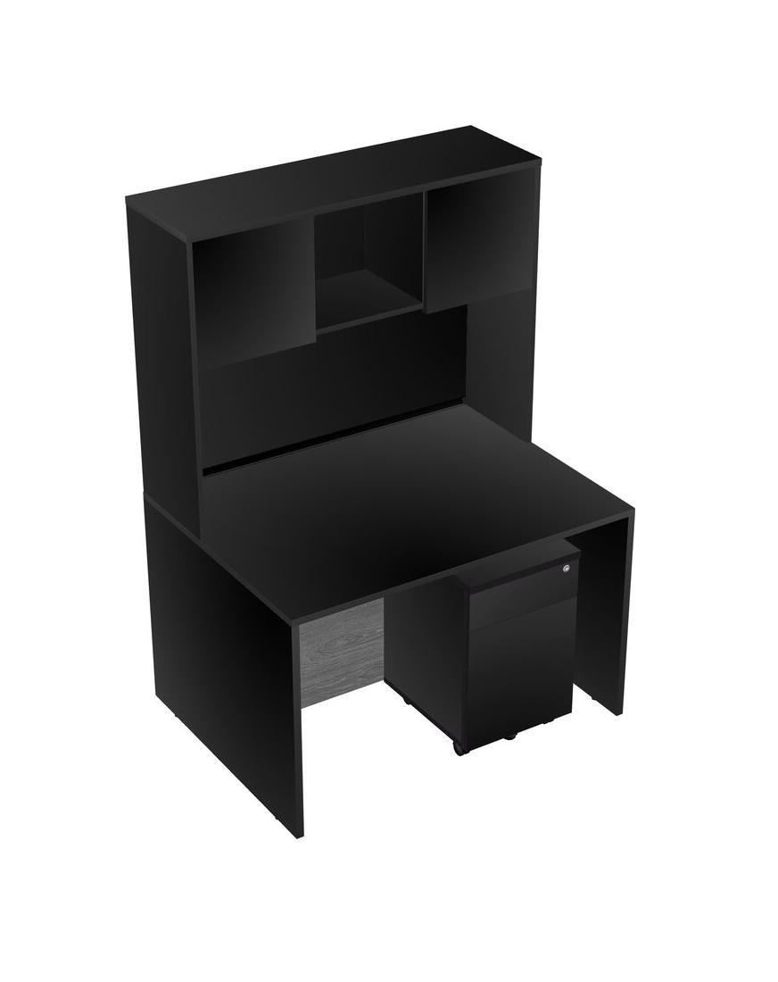 Black Rectangular Office Desk Plus Black Wooden Mobile Drawers And Black Hutch