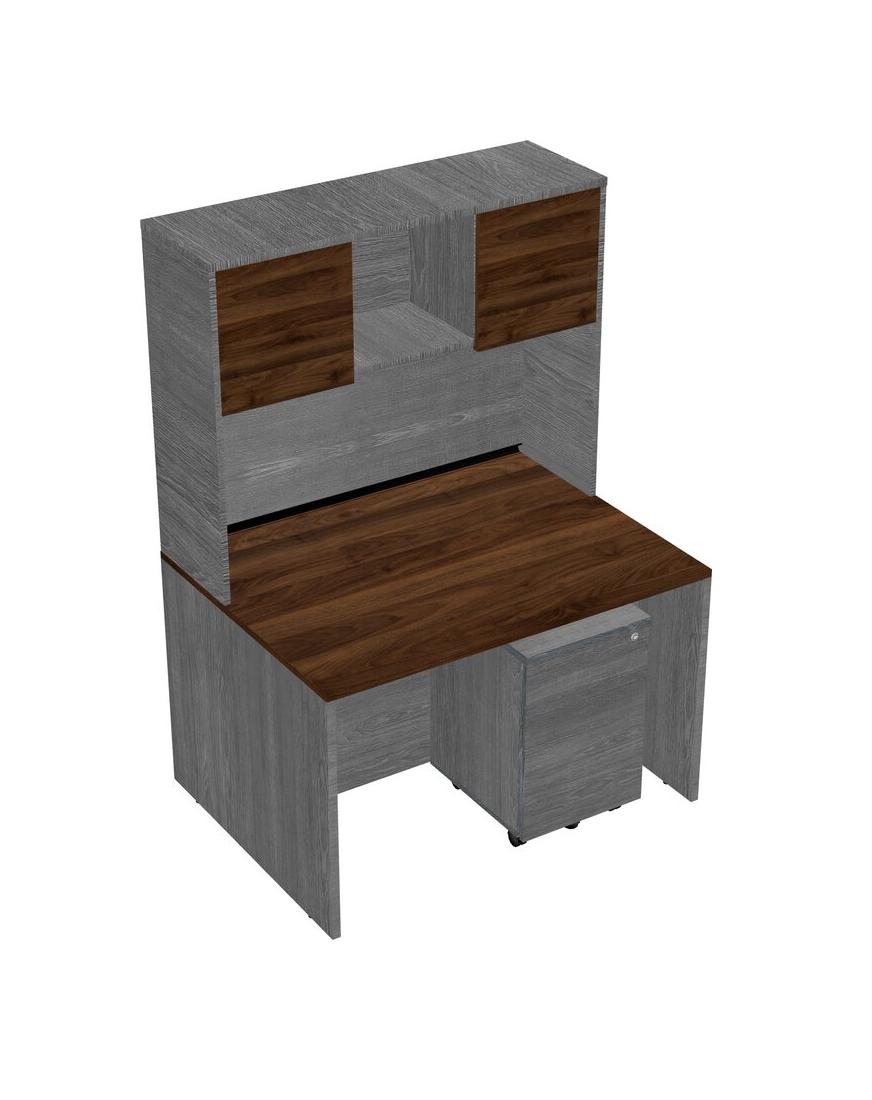 Columbia Walnut Rectangular Office Desk Plus Grey Wooden Mobile Drawers And Grey Hutch