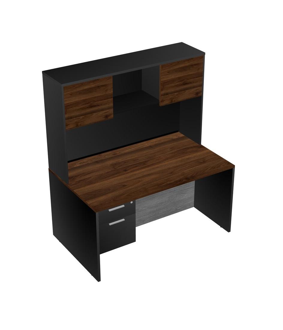 Columbia Walnut Rectangular Office Desk Plus Black Hanging Drawers And Black Hutch