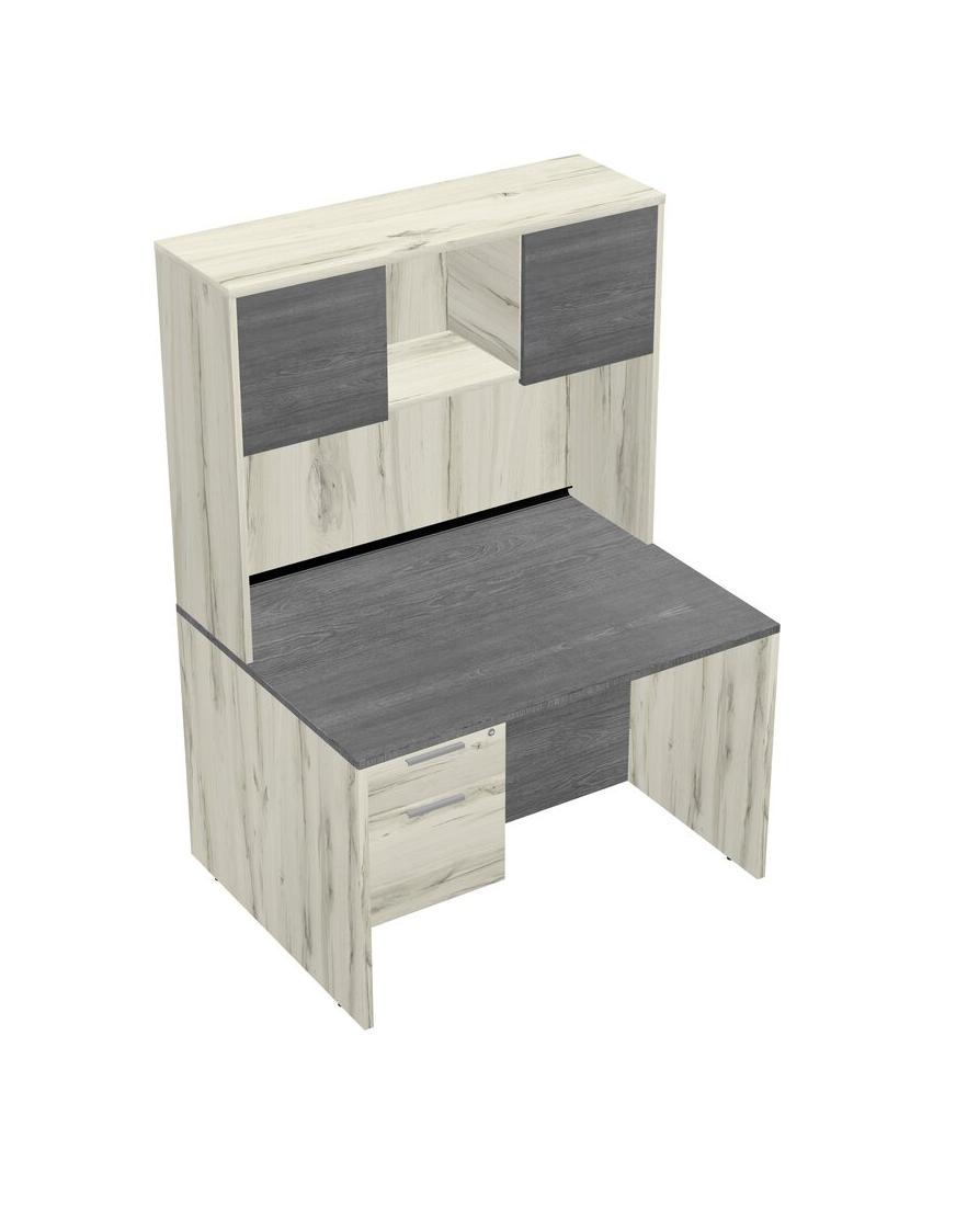 Grey Rectangular Office Desk Plus Heinne Holz Hanging Drawers And Heinne Holz Hutch
