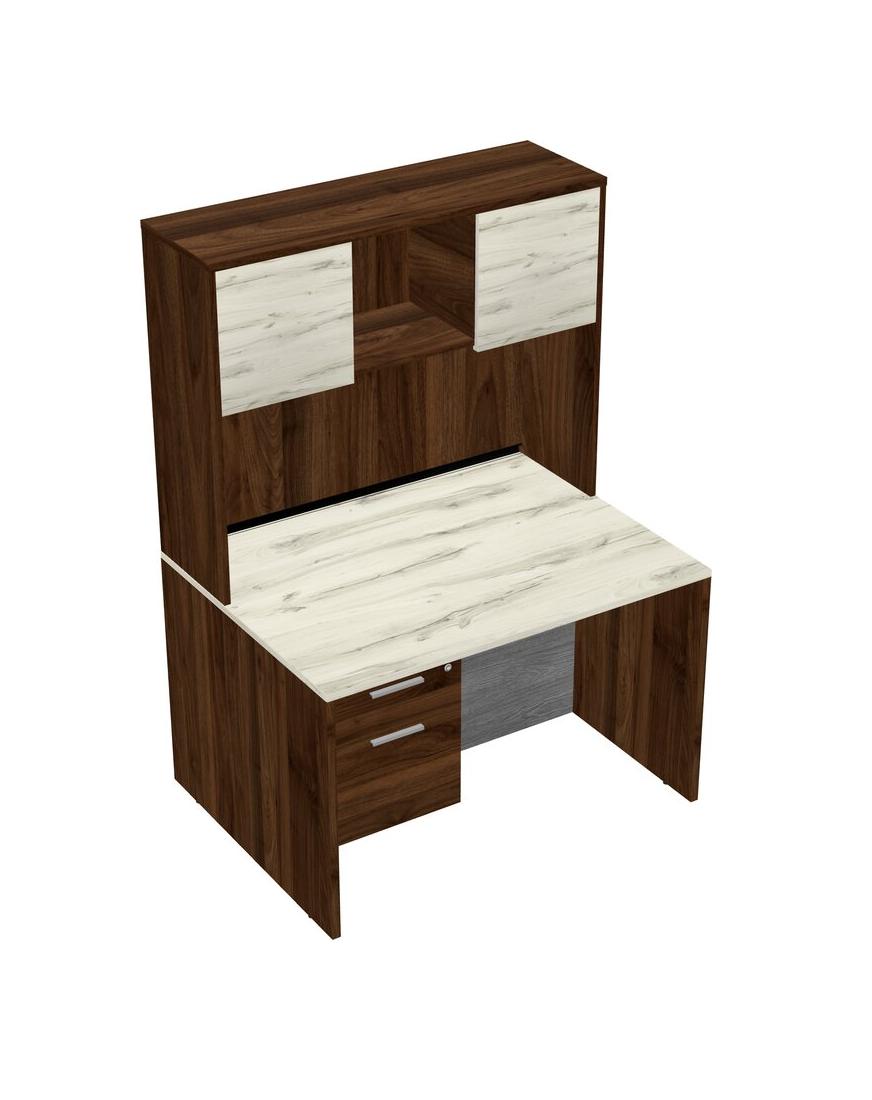 Heinne Holz Rectangular Office Desk Plus Columbia Walnut Hanging Drawers And Columbia Walnut Hutch