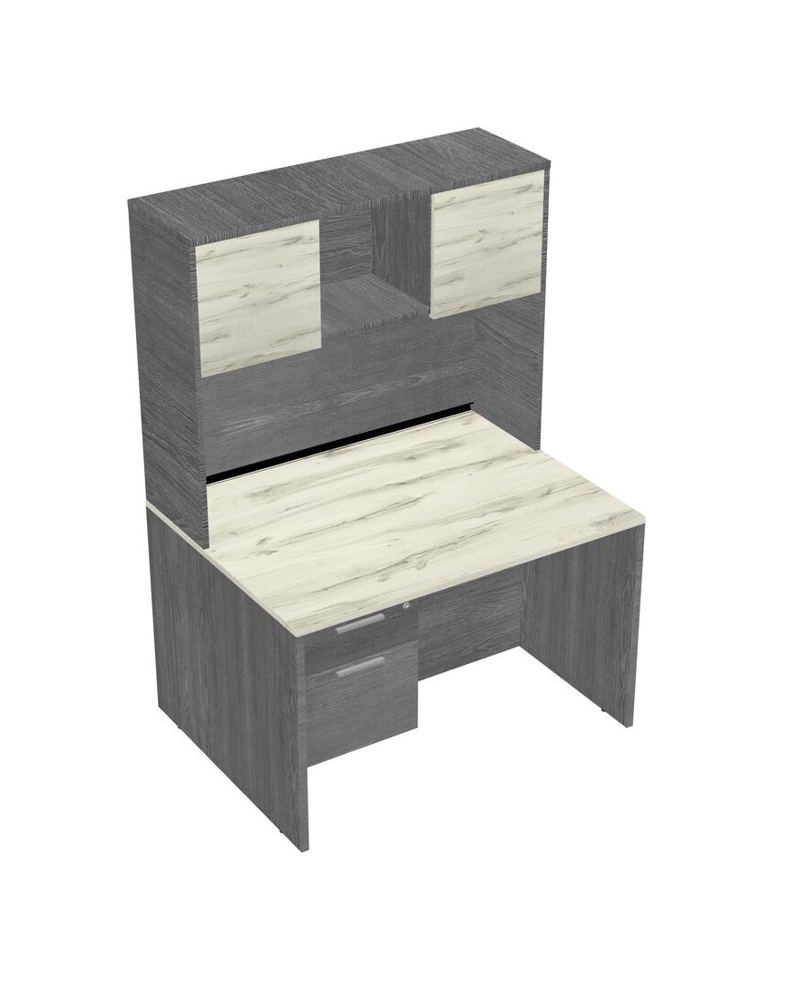 Heinne Holz Rectangular Office Desk Plus Grey Hanging Drawers And Grey Hutch