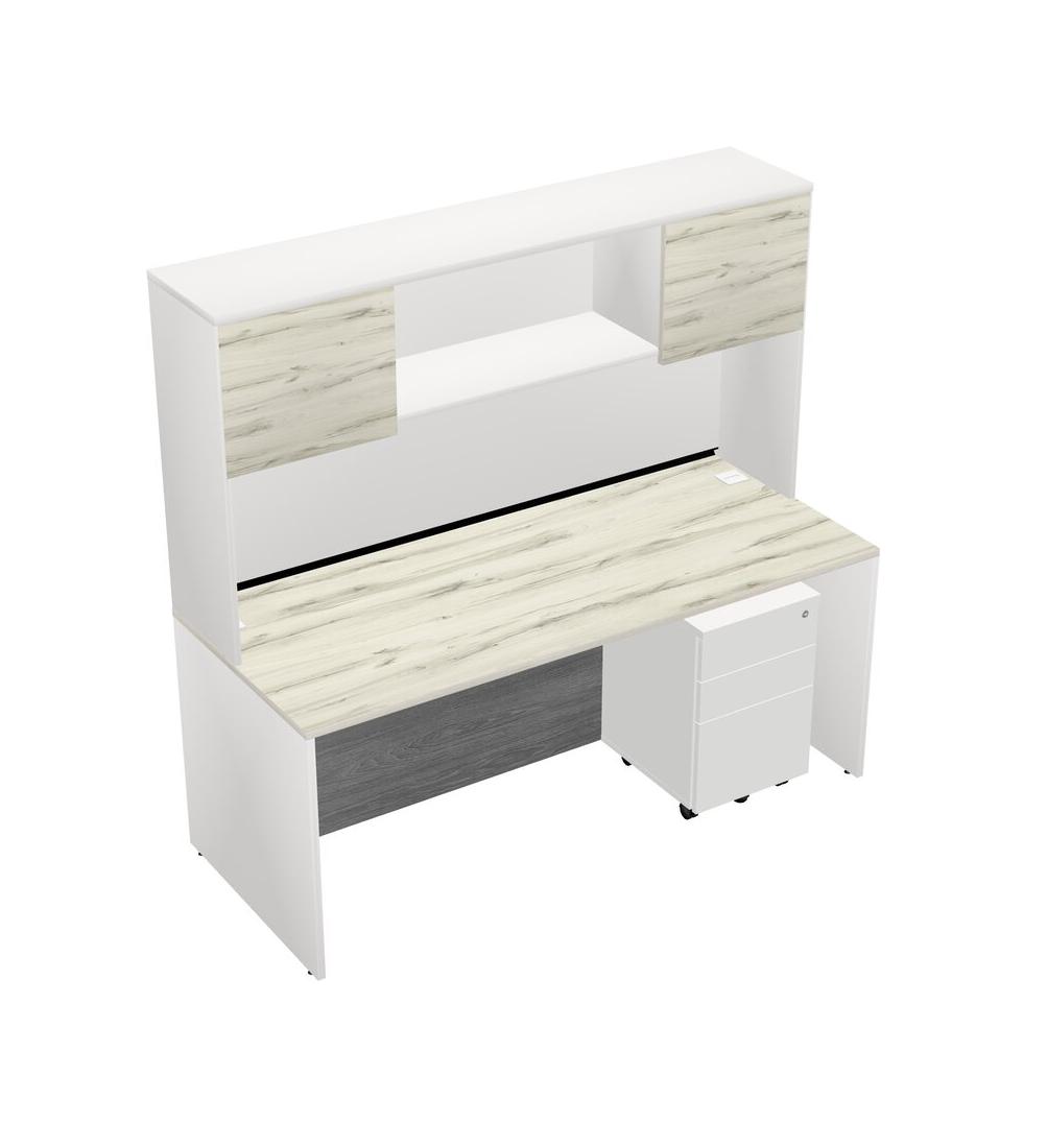 Heinne Holz Rectangular Office Desk Plus White Wooden Mobile Drawers And White Hutch