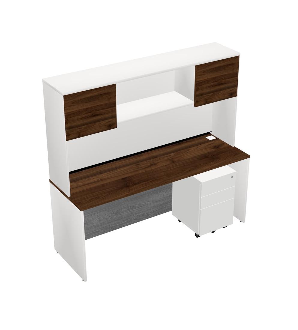 Columbia Walnut Rectangular Office Desk Plus White Wooden Mobile Drawers And White Hutch