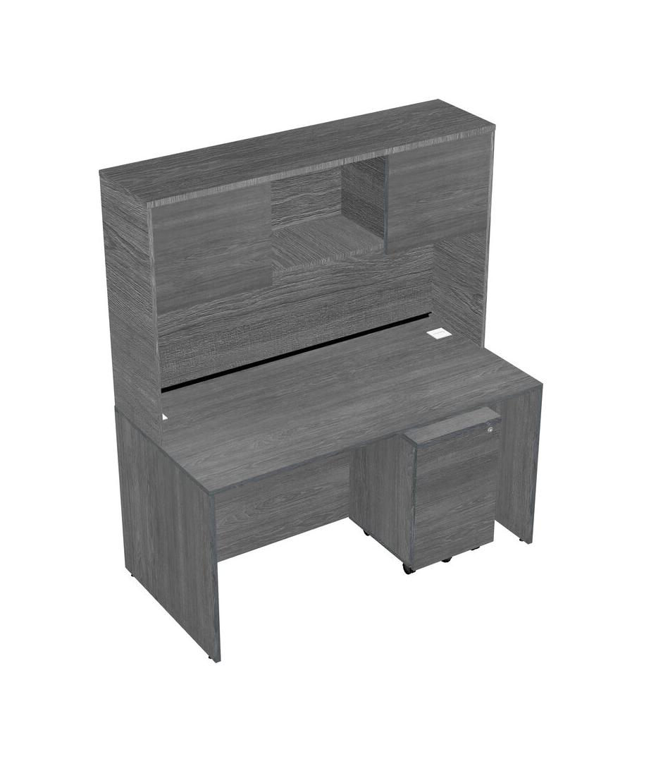 Grey Rectangular Office Desk Plus Grey Wooden Mobile Drawers And Grey Hutch