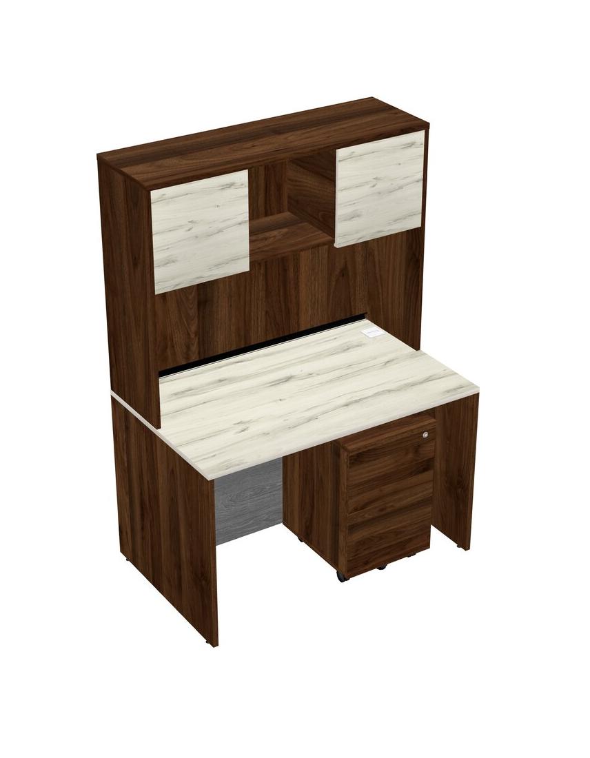 Heinne Holz Rectangular Office Desk Plus Columbia Walnut Wooden Mobile Drawers And Columbia Walnut Hutch