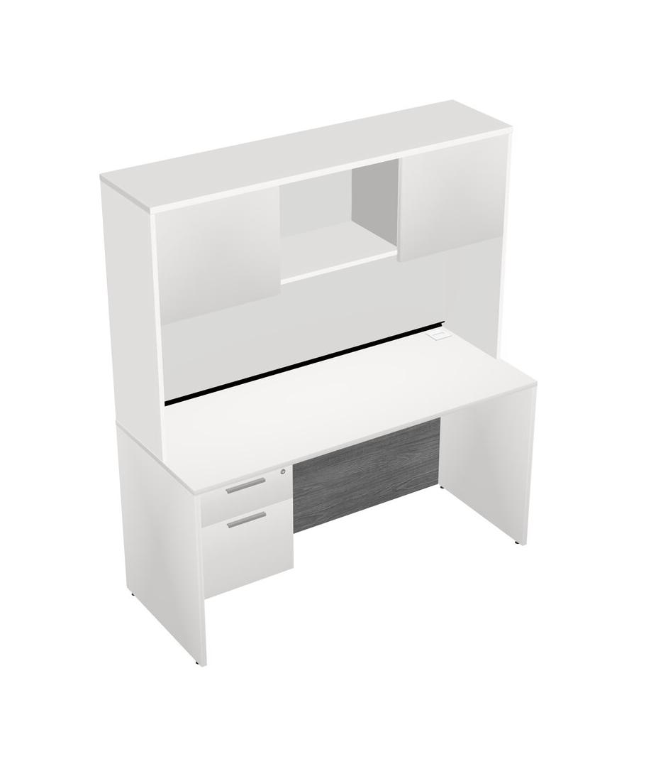 White Rectangular Office Desk Plus White Hanging Drawers And White Hutch