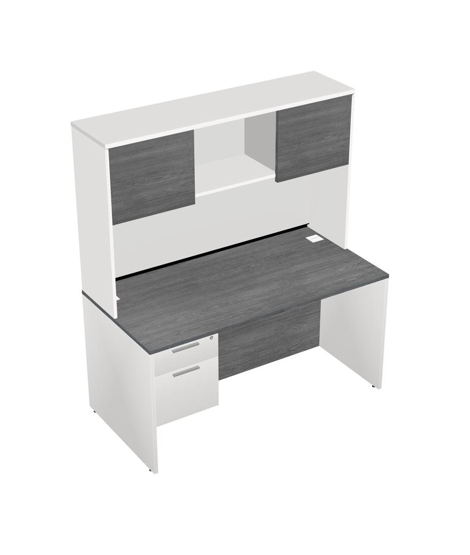 Grey Rectangular Office Desk Plus White Hanging Drawers And White Hutch