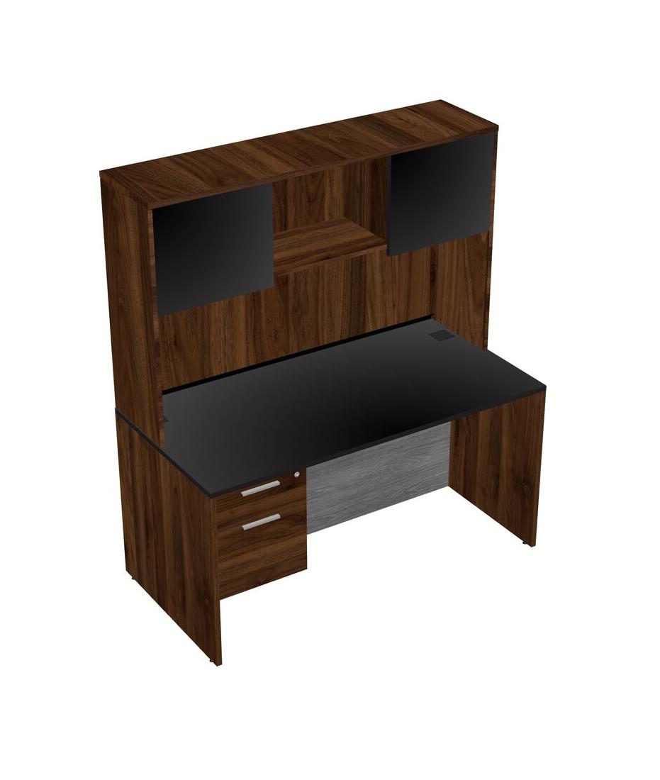 Black Rectangular Office Desk Plus Columbia Walnut Hanging Drawers And Columbia Walnut Hutch