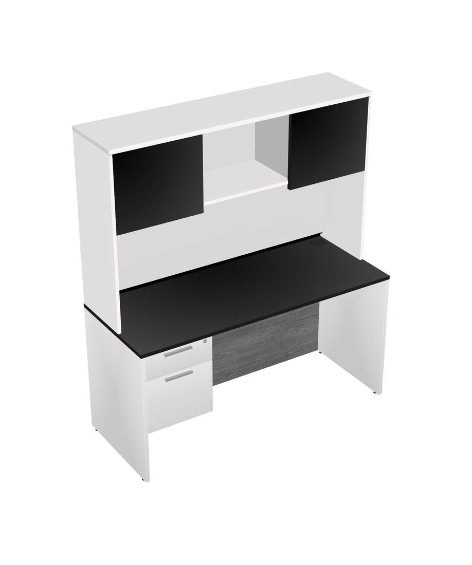 Black Rectangular Office Desk Plus White Hanging Drawers And White Hutch