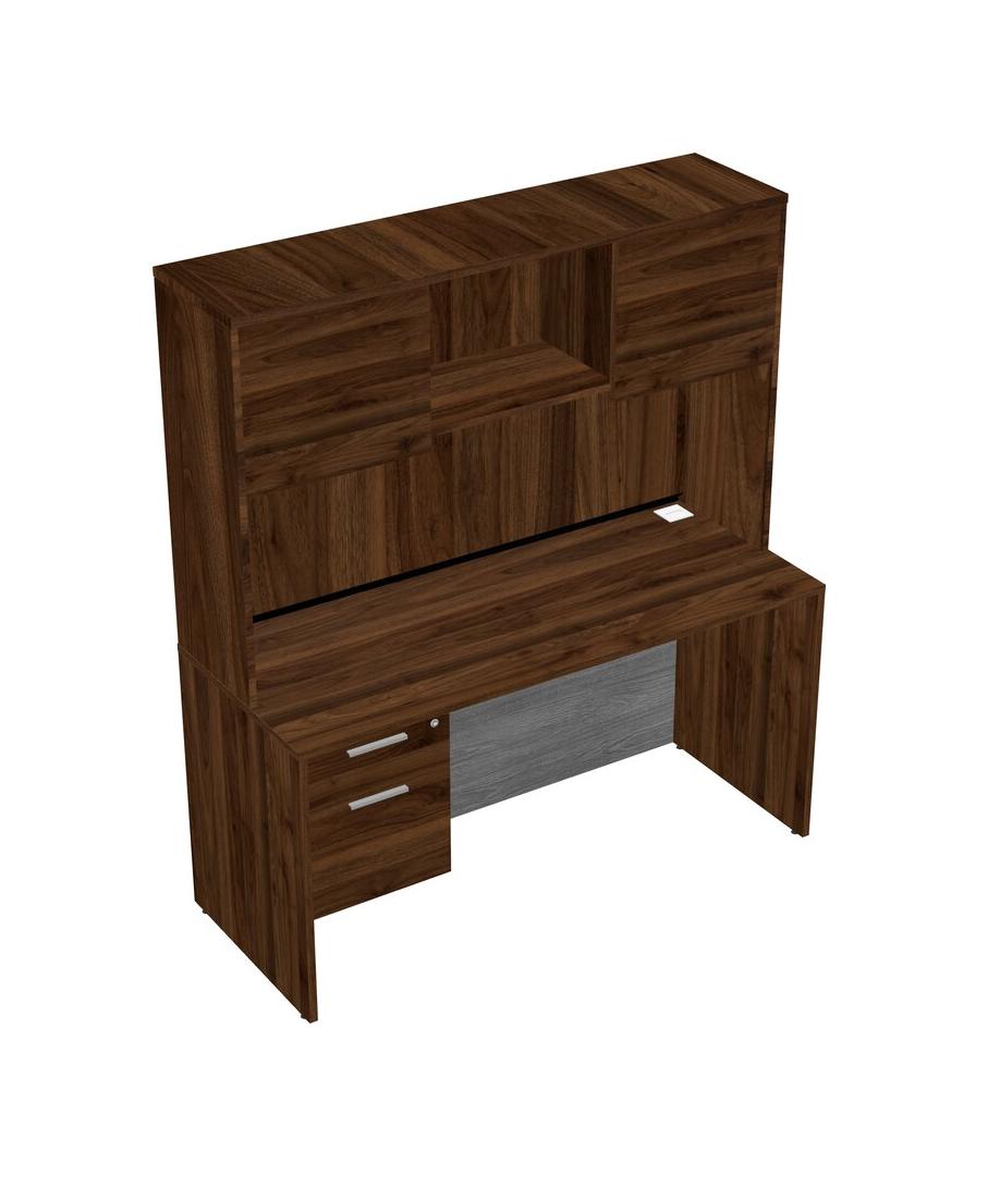 Columbia Walnut Rectangular Office Desk Plus Columbia Walnut Hanging Drawers And Columbia Walnut Hutch