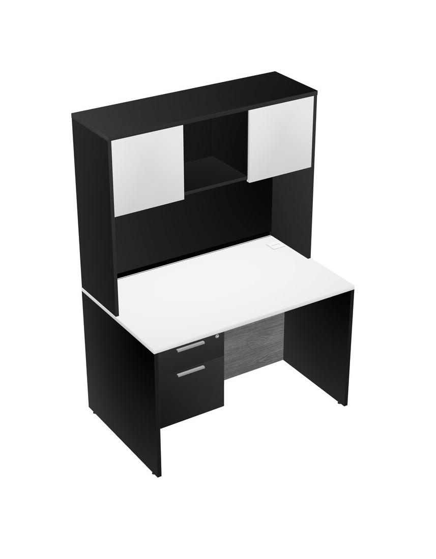White Rectangular Office Desk Plus Black Hanging Drawers And Black Hutch