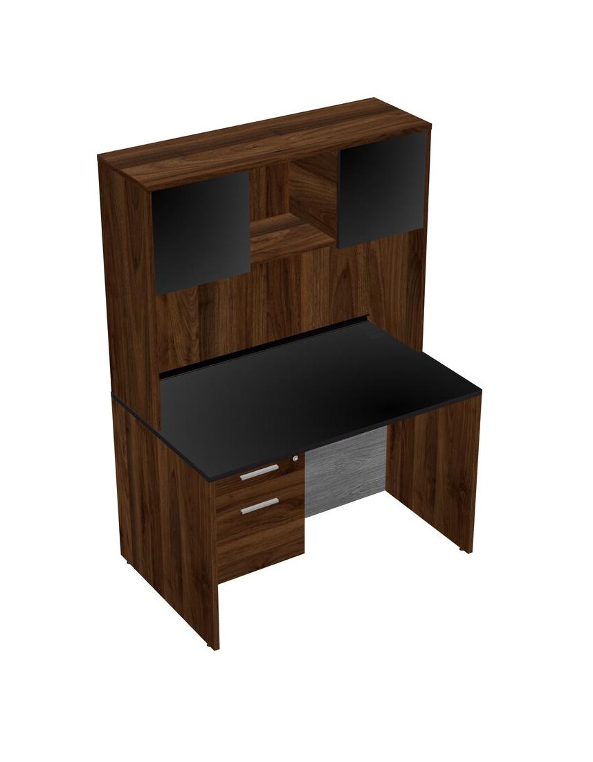 Black Rectangular Office Desk Plus Columbia Walnut Hanging Drawers And Columbia Walnut Hutch