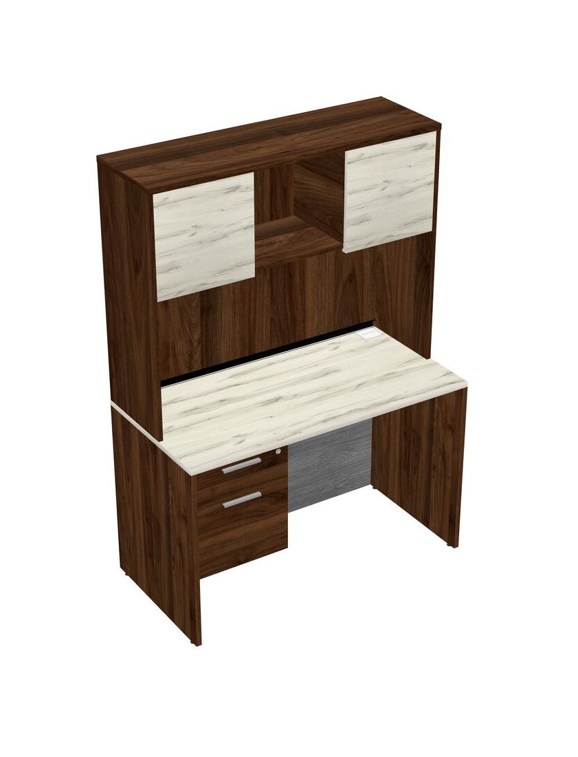 Heinne Holz Rectangular Office Desk Plus Columbia Walnut Hanging Drawers And Columbia Walnut Hutch