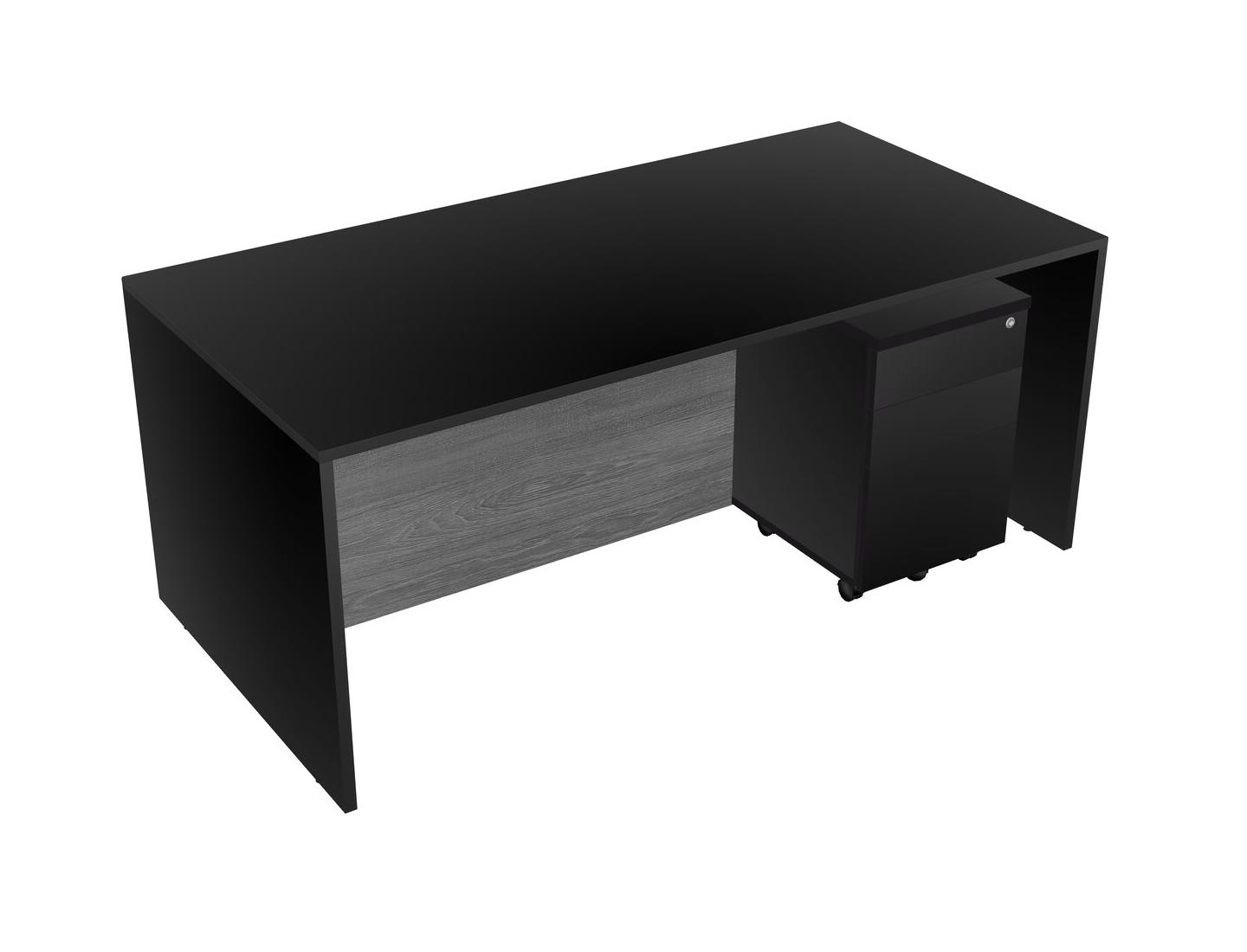Black Rectangular Office Desk Plus Black Wooden Mobile Drawers