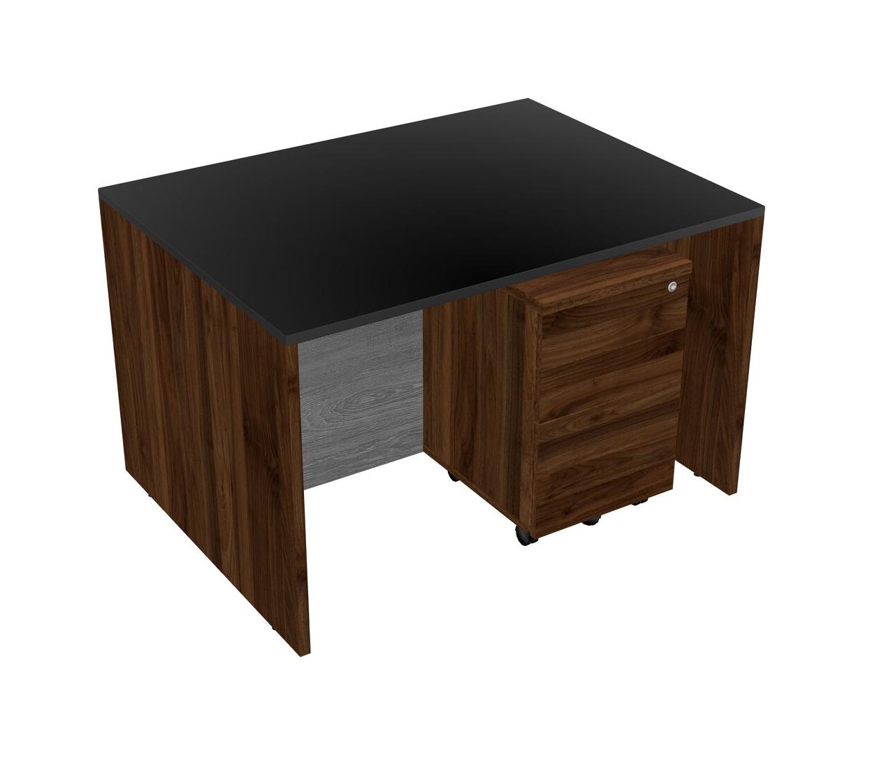 Black Rectangular Office Desk Plus Columbia Walnut Wooden Mobile Drawers