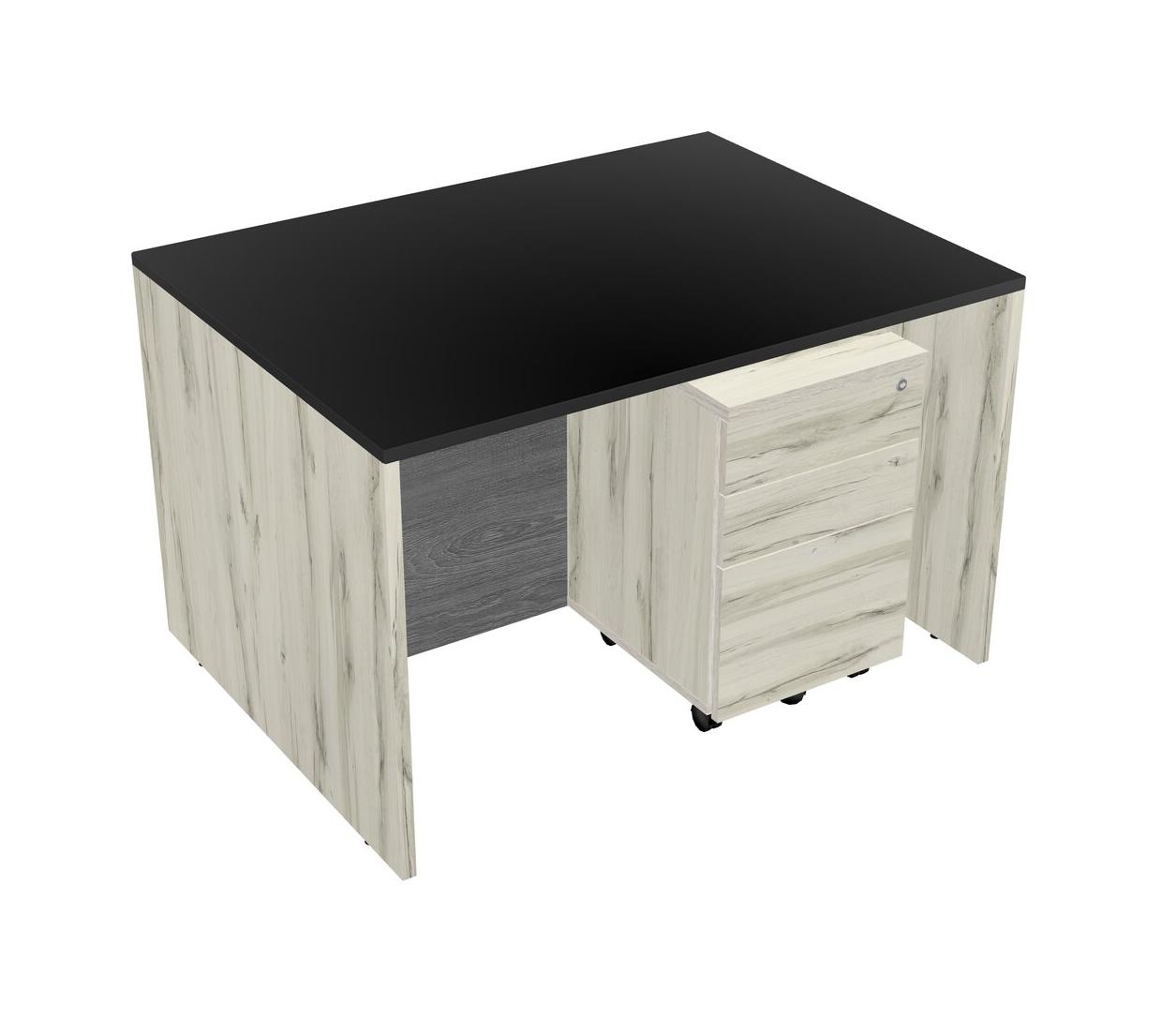 Black Rectangular Office Desk Plus Heinne Holz Wooden Mobile Drawers