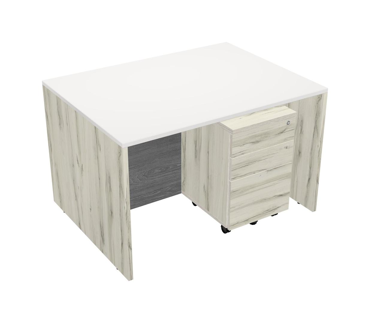 White Rectangular Office Desk Plus Heinne Holz Wooden Mobile Drawers