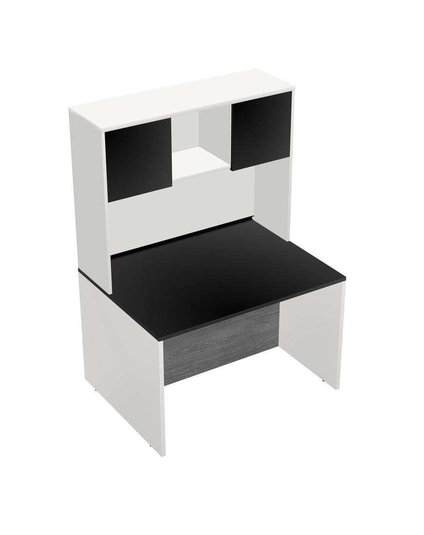 Black Rectangular Office Desk And White Hutch
