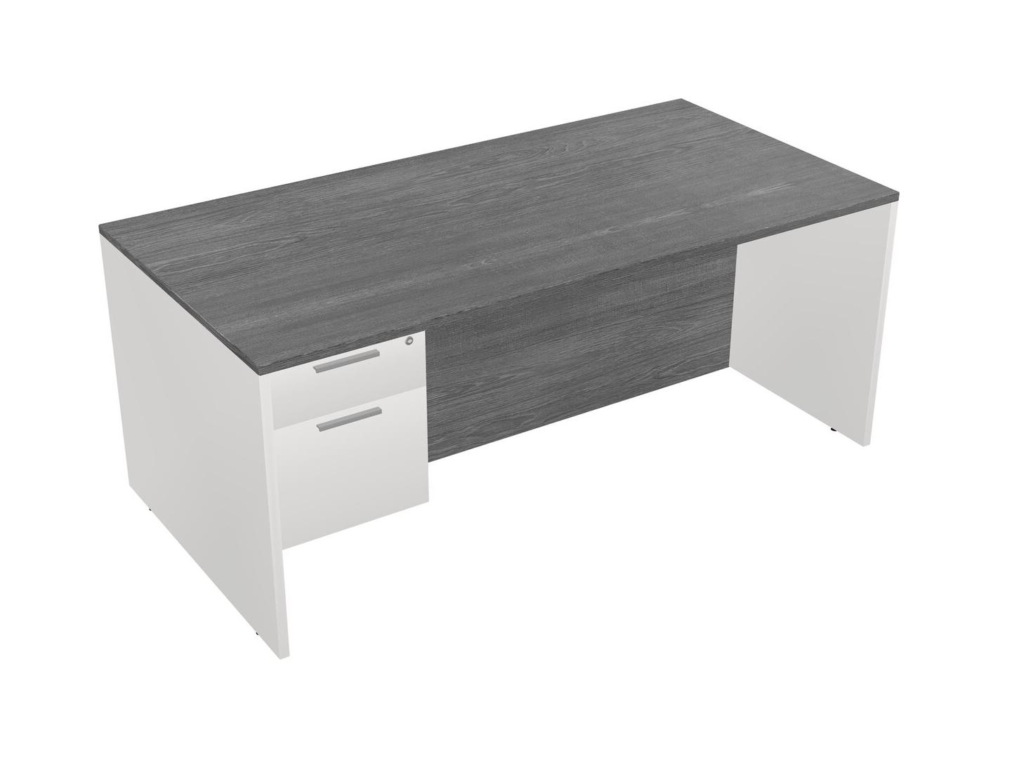 Grey Rectangular Office Desk Plus White Hanging Drawers