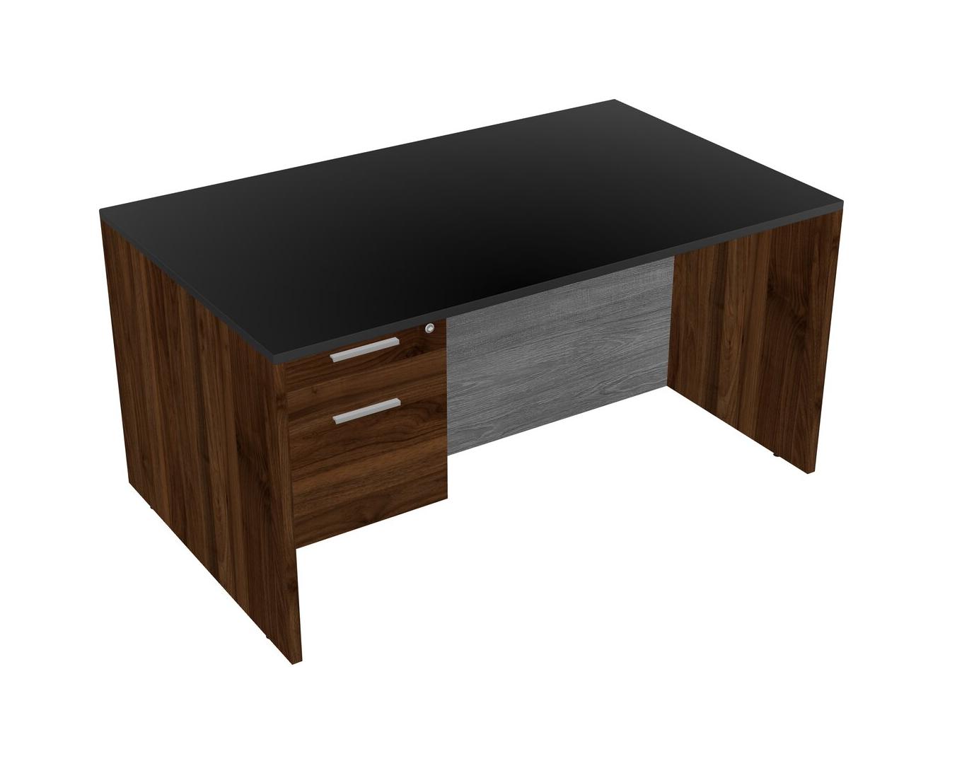 Black Rectangular Office Desk Plus Columbia Walnut Hanging Drawers