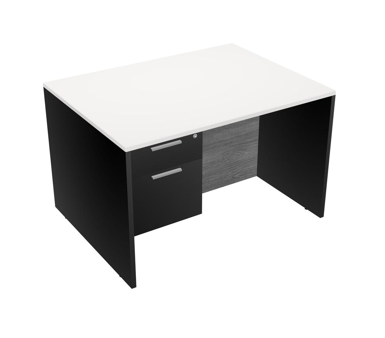 White Rectangular Office Desk Plus Black Hanging Drawers