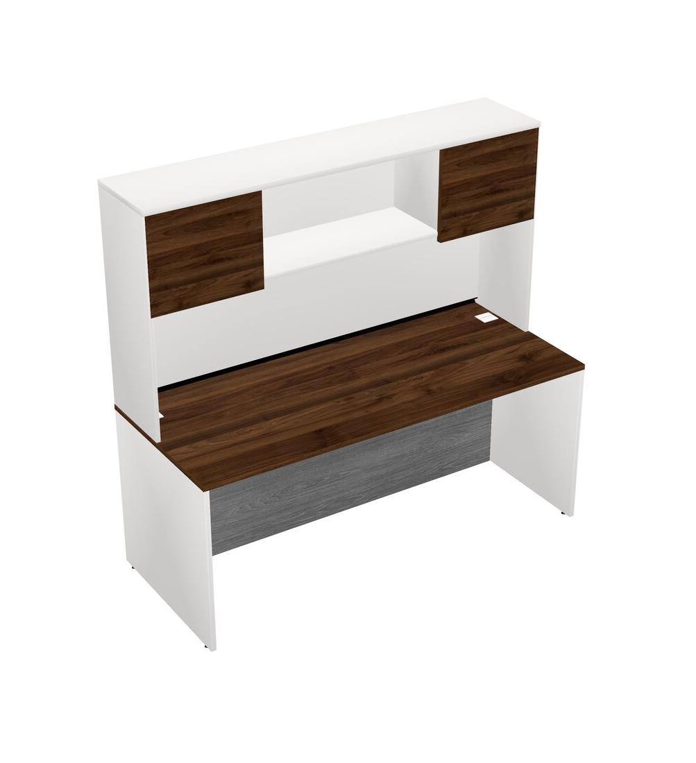 Columbia Walnut Rectangular Office Desk And White Hutch